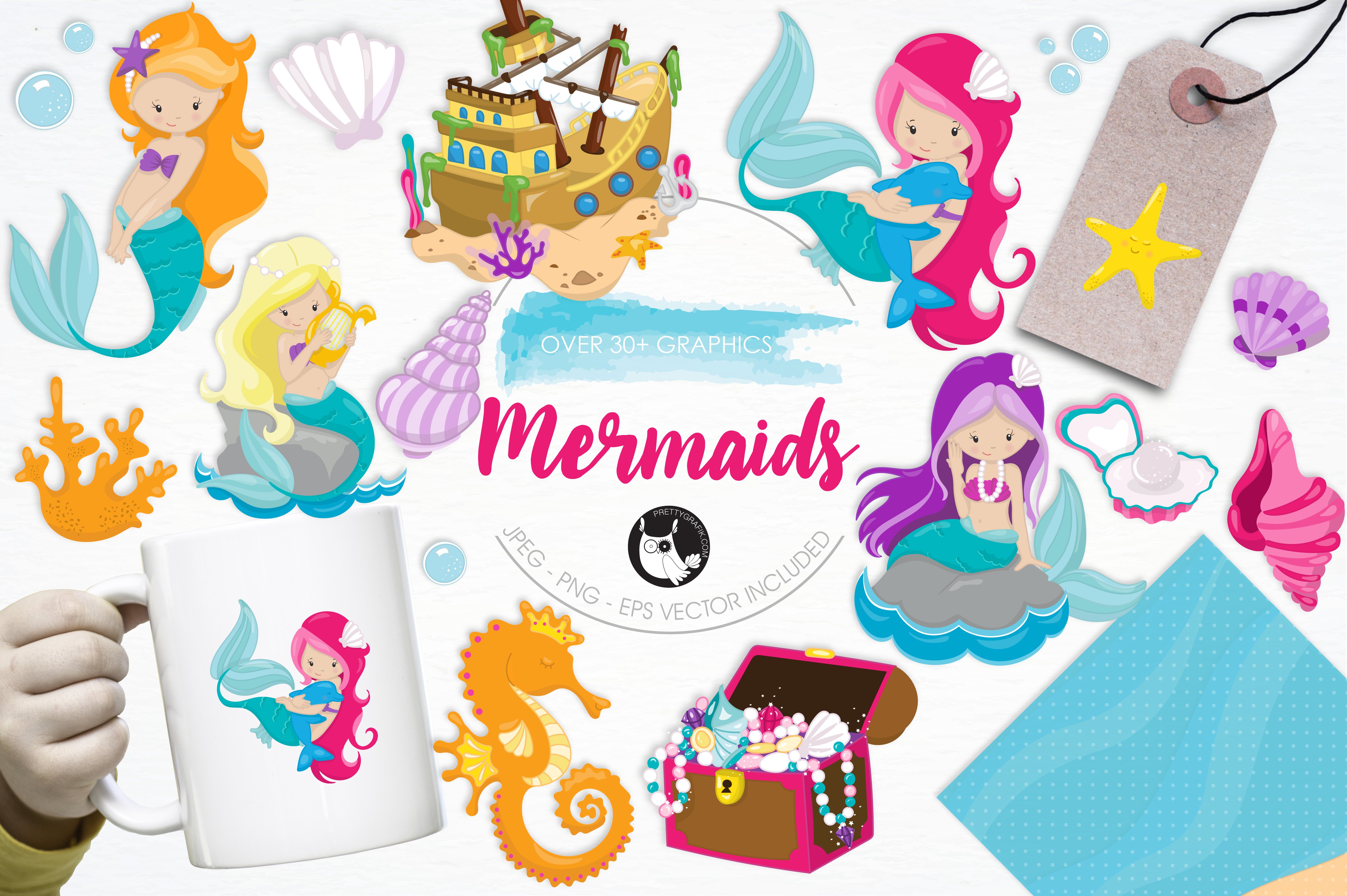 Download Vector "Mermaid Illustration Pack - Vector Image" / Mermaid Illustration Pack - Vector Image - Vector на тему графика illustration,vector,clipart,clip art,bubbles,icons,eps,starfish,mermaid,pearl,harp,seashells,dolphin,coral,shipwreck,clams,shells,treasure