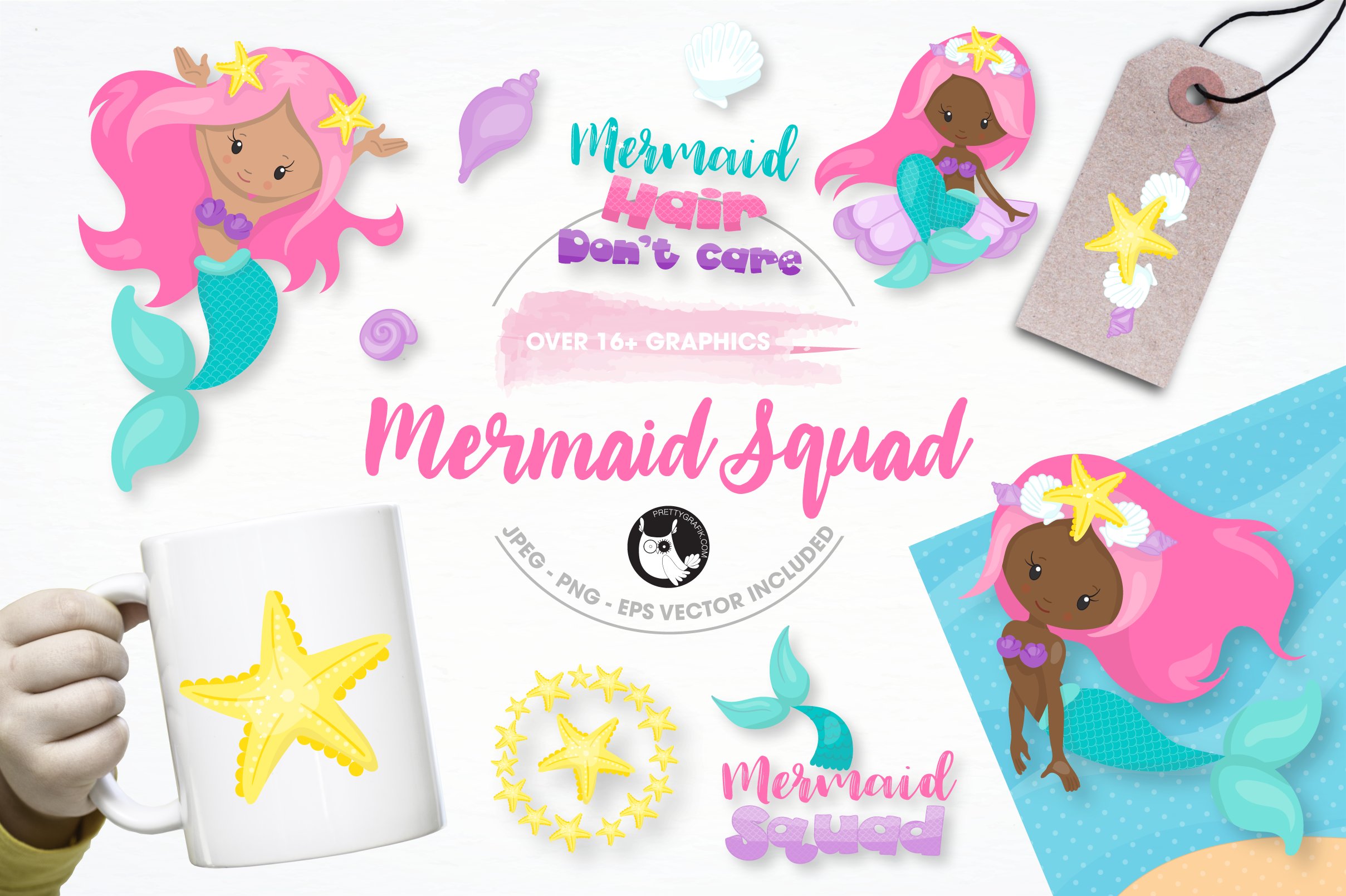Download Vector "mermaid squad illustration pack - Vector Image" / mermaid squad illustration pack - Vector Image - Vector на тему графика illustration,scrapbook,vector,art,clipart,clip art,unicorn,eps,mermaid,prettygrafik,mermaid squad,commercial use,digital art,digital scrapbook,unicorn mermaid,nautical mermaid