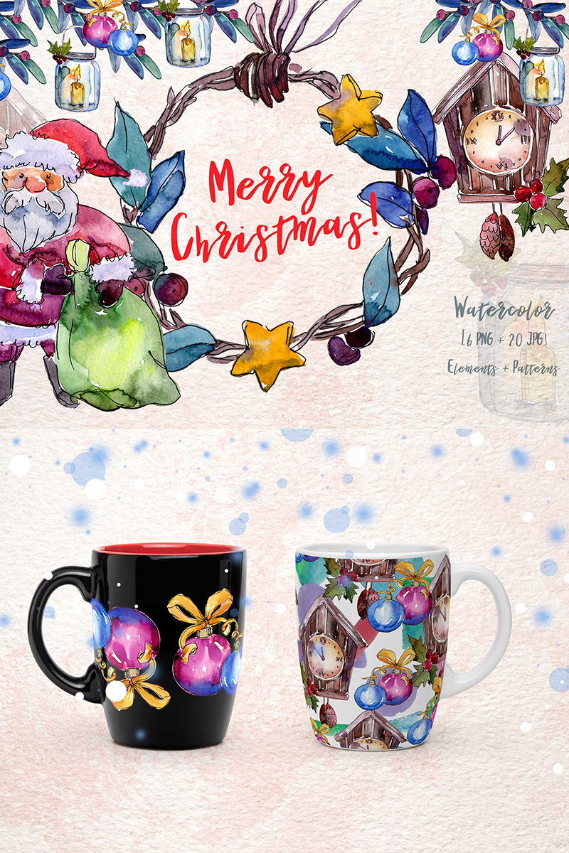 Download Иллюстрация "Merry Christmas Holiday PNG Watercolor Set - Illustration" / Merry Christmas Holiday PNG Watercolor Set - Illustration - Иллюстрация на тему графика christmas watercolor illustration year new design girl decoration card tree pattern holiday gift isolated winter holly pine background greeting happy