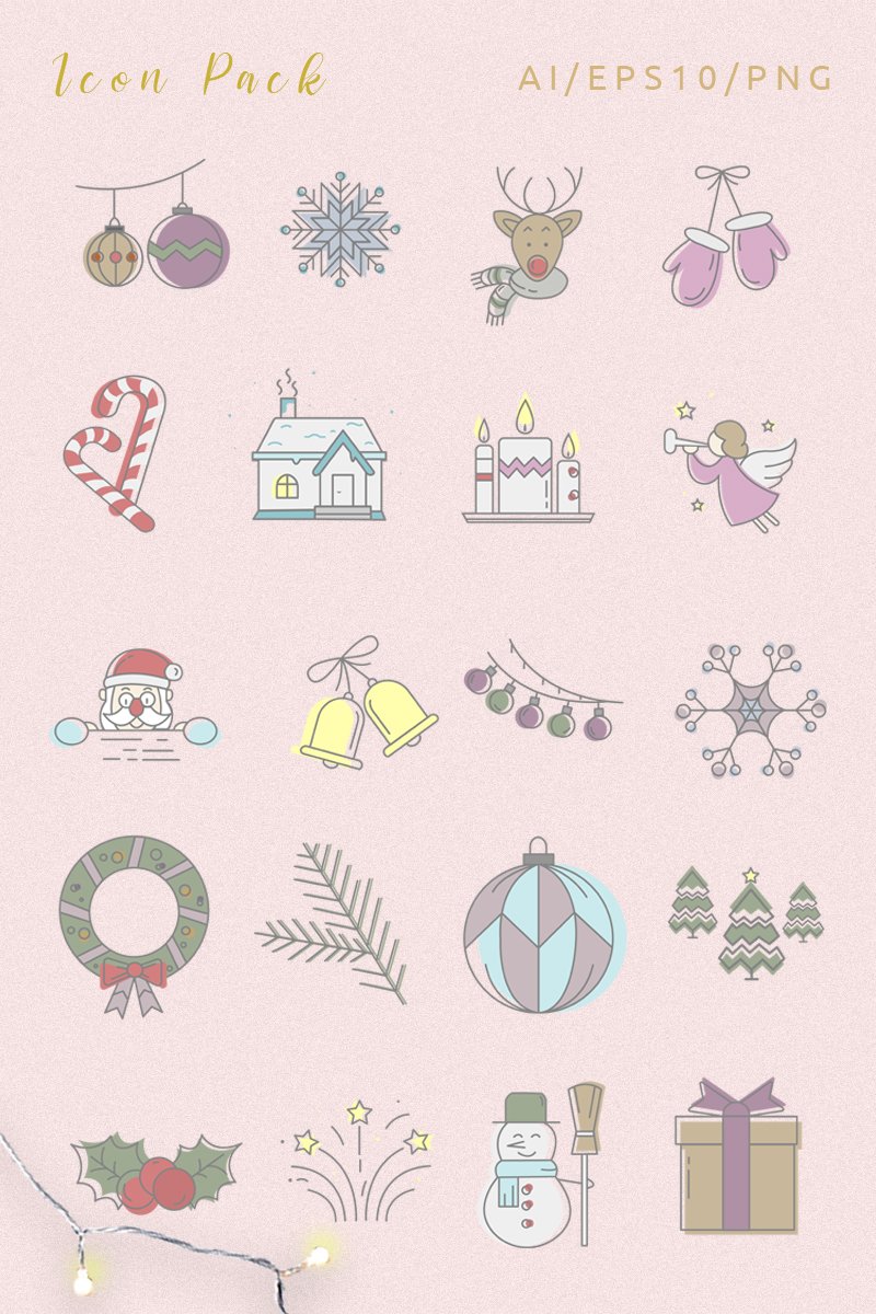 Download Набор иконок "Merry Christmas Icon Set" / Merry Christmas Icon Set - Набор иконок на тему графика christmas,snowflake,deer,santa,mittens,lollipops,night,garland,trees,snowfall,snowman,tree,sprig,hat,gift,candles,candle,bells,angel,fireworks