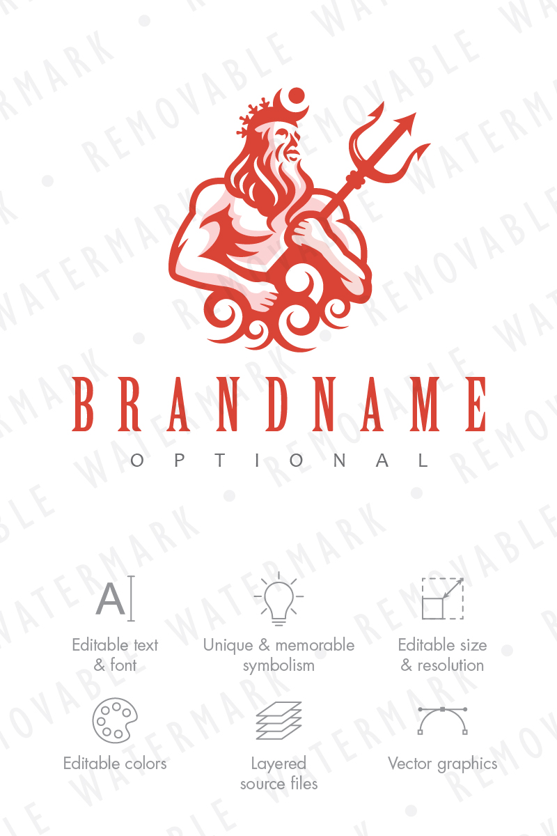 Download Шаблон логотипа "Messenger of the Seas Logo Template" / Messenger of the Seas Logo Template - Шаблон логотипа на тему графика ocean water power sea god mythology messenger trident poseidon deity titan neptune triton spa mascot character strength logo design template