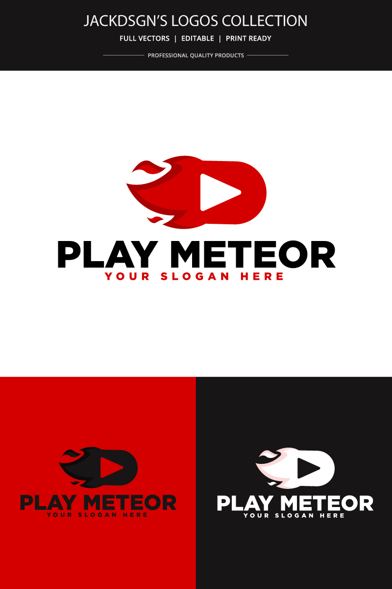 Download Шаблон логотипа "Meteor Play Logo Template" / Meteor Play Logo Template - Шаблон логотипа на тему графика meteor,play,movie,video,gallery,fire,red,business,media,social,modern