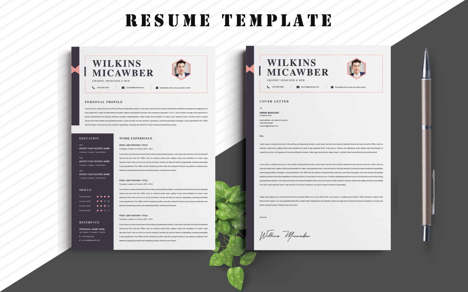 Download Резюме "Micawber Resume Template" / Micawber Resume Template - Резюме на тему графика 2 page,a4,clean,resume,cv,design,infographic,letter,minimalist,in design,pages,portfolio,minimal