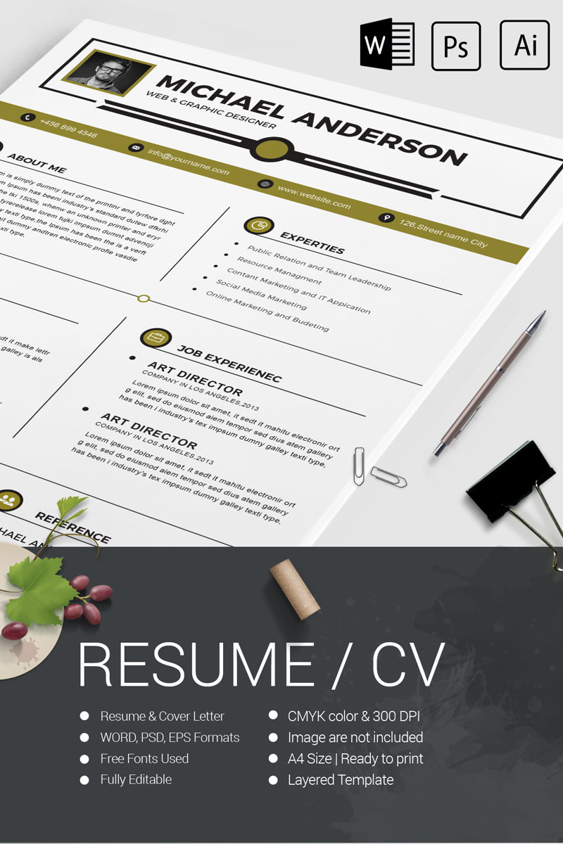 Download Резюме "Michael Anderson Resume Template" / Michael Anderson Resume Template - Резюме на тему графика 2 page a4 clean cv design elegant resume female feminine infographic letter minimalist modern portfolio professional indesign minimal pages