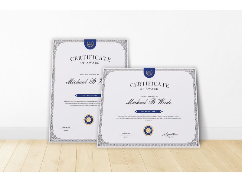 Download Шаблон сертификата "Michael B Wiede Certificate Template" / Michael B Wiede Certificate Template - Шаблон сертификата на тему графика a4,achievement,acknowledgement,adobe illustration,adobe photoshop,appreciation,award,certification,graduation,lancscape,layout,microsoft word,portrait,professional,recognition,template