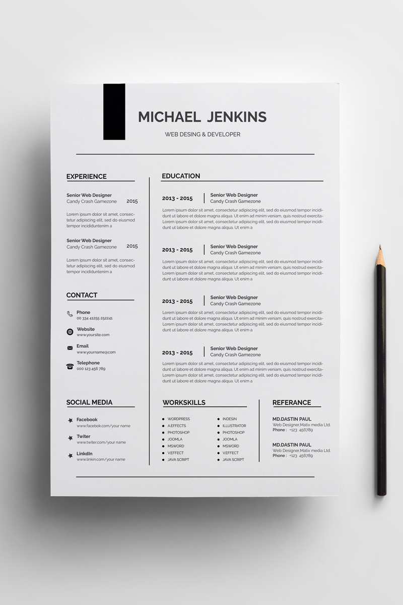 Download Резюме "Michael Jenkins Resume Template" / Michael Jenkins Resume Template - Резюме на тему графика clean,resume,design,writing,cover,letter,instant,download,for,mac,cv,template,infographic,minimal,swiss,creative,photo,photoshop,psd,word