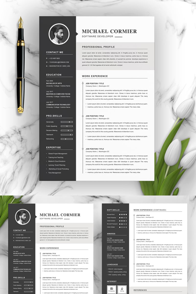 Download Резюме "Michael Resume Template" / Michael Resume Template - Резюме на тему графика 1 page resume 2 clean cv cover letter design template illustrator eps mac pages microsoft word modern photoshop psd professional