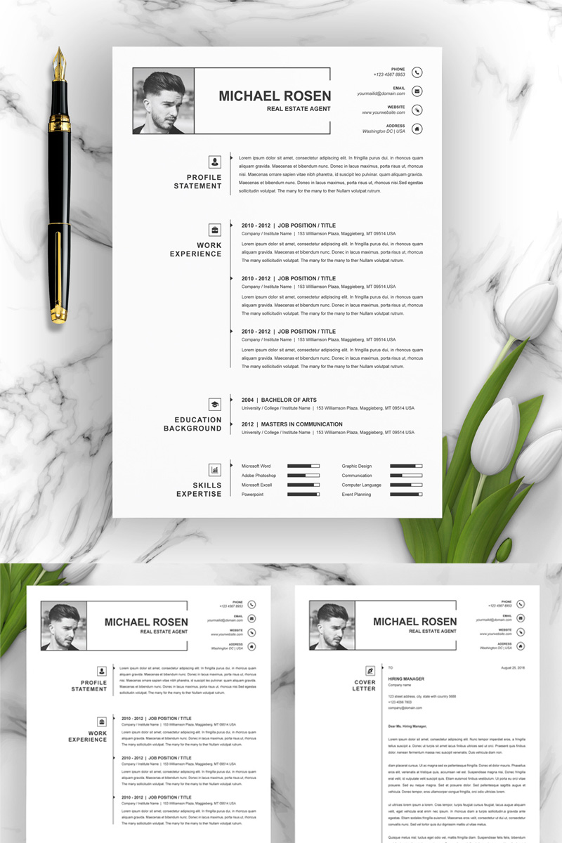 Download Резюме "Michael Resume Template" / Michael Resume Template - Резюме на тему графика 1 page resume 2 clean cv cover letter design template illustrator eps mac pages microsoft word modern photoshop psd professional