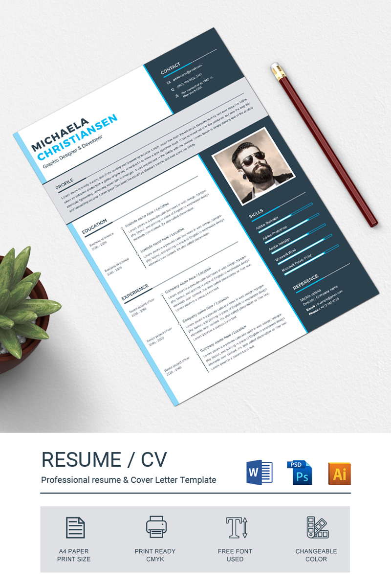 Download Резюме "Michaela Resume Template" / Michaela Resume Template - Резюме на тему графика resume template cv clean modern a4 doc elegant indesign infographic professional creative design minimal pages portfolio word us letter