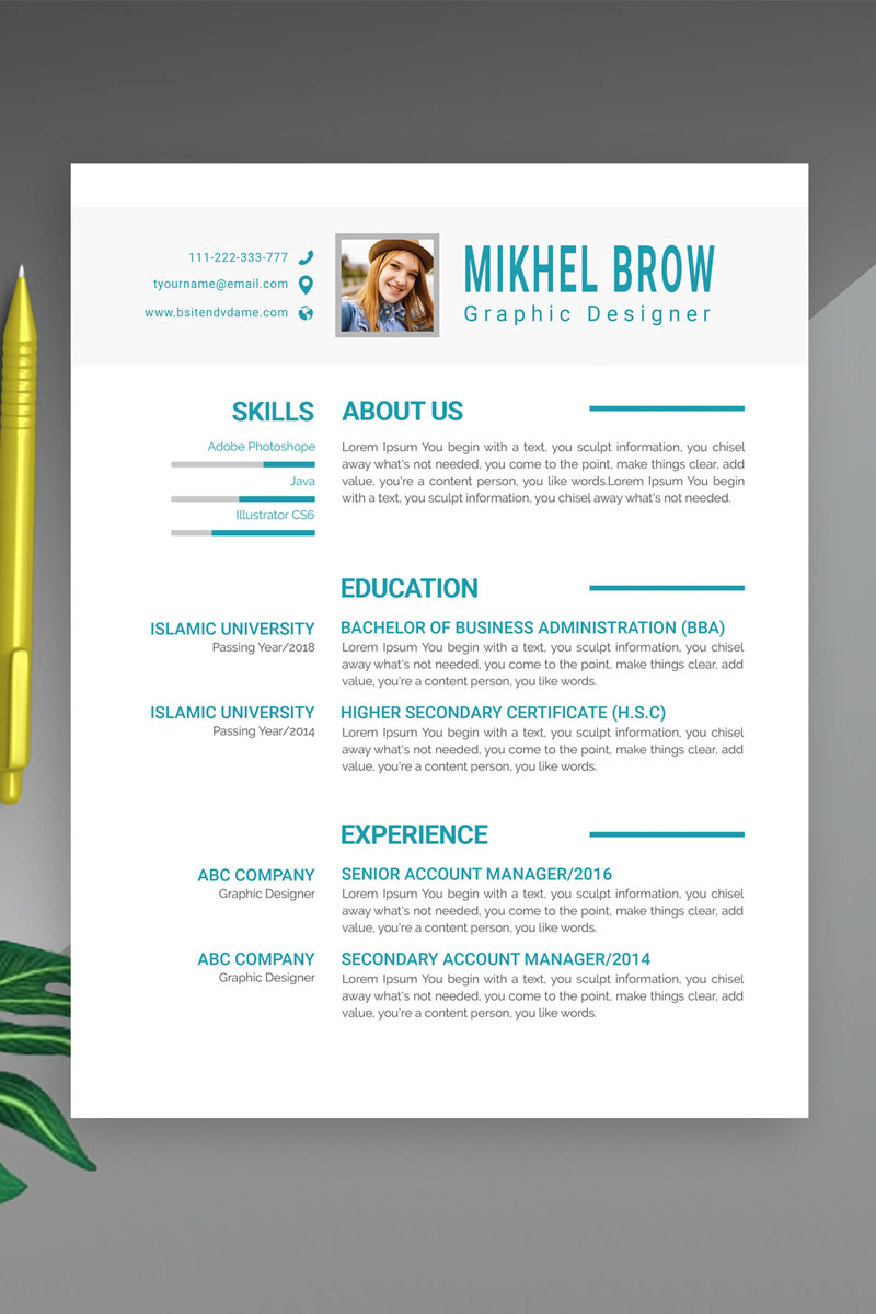 Download Резюме "Mikhel Brow Resume Template" / Mikhel Brow Resume Template - Резюме на тему графика modern resume portfolio professional clean cv design indesign infographic minimal pages