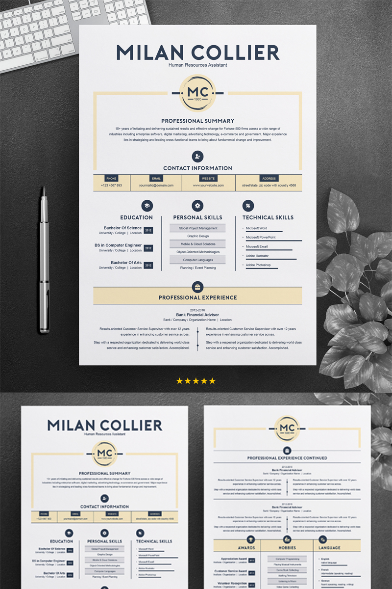Download Резюме "Milan Collier Resume Template" / Milan Collier Resume Template - Резюме на тему графика resume template cv curriculum vitae modern clean word microsoft a4 us letter monochrome minimal diy teacher creative professional feminine