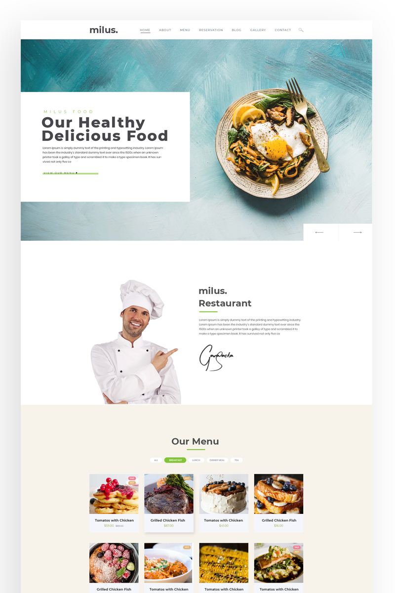 Download PSD шаблон "Milus Restaurant PSD Template" / Milus Restaurant PSD Template - PSD шаблон на тему кафе и ресторан