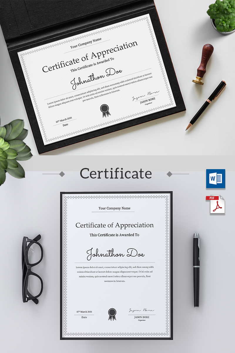 Download Шаблон сертификата "Minimal Certificate Template" / Minimal Certificate Template - Шаблон сертификата на тему графика achievement,acknowledgement,appraisal,appreciation,award,certificate,template,word,certification,corporate,diploma,employee,excellence,frame,graduation,modern,ms,paper,docx,job