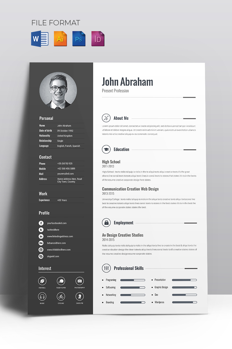 Download Резюме "Minimal Creative CV Resume Template" / Minimal Creative CV Resume Template - Резюме на тему графика 3-piece resume a4 blue bright career clean cv cover letter creative curriculum vitae design template editable elegant job light professional