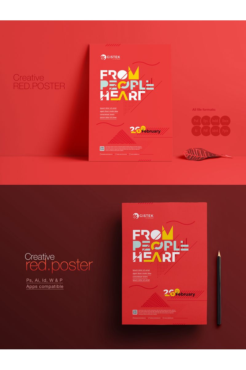 Download Фирменный стиль "Minimal Red Poster for Event - Corporate Identity Template" / Minimal Red Poster for Event - Corporate Identity Template - Фирменный стиль на тему графика design template minimal red poster event party typography typographic text style abstract typo creative flyer