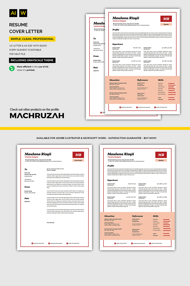 Download Резюме "Minimalist Resume Template" / Minimalist Resume Template - Резюме на тему графика resume template cv coverletter microsoftword creative design clean professional curriculumvitae modern simple word job