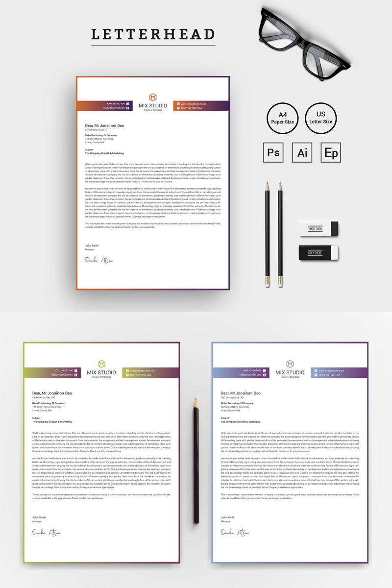 Download Фирменный стиль "Mix Studio Letterhead - Corporate Identity Template" / Mix Studio Letterhead - Corporate Identity Template - Фирменный стиль на тему графика letterhead clean colorful corporate creative editable elegant ipad letter modern pad print ready simple sleek stationery stylish