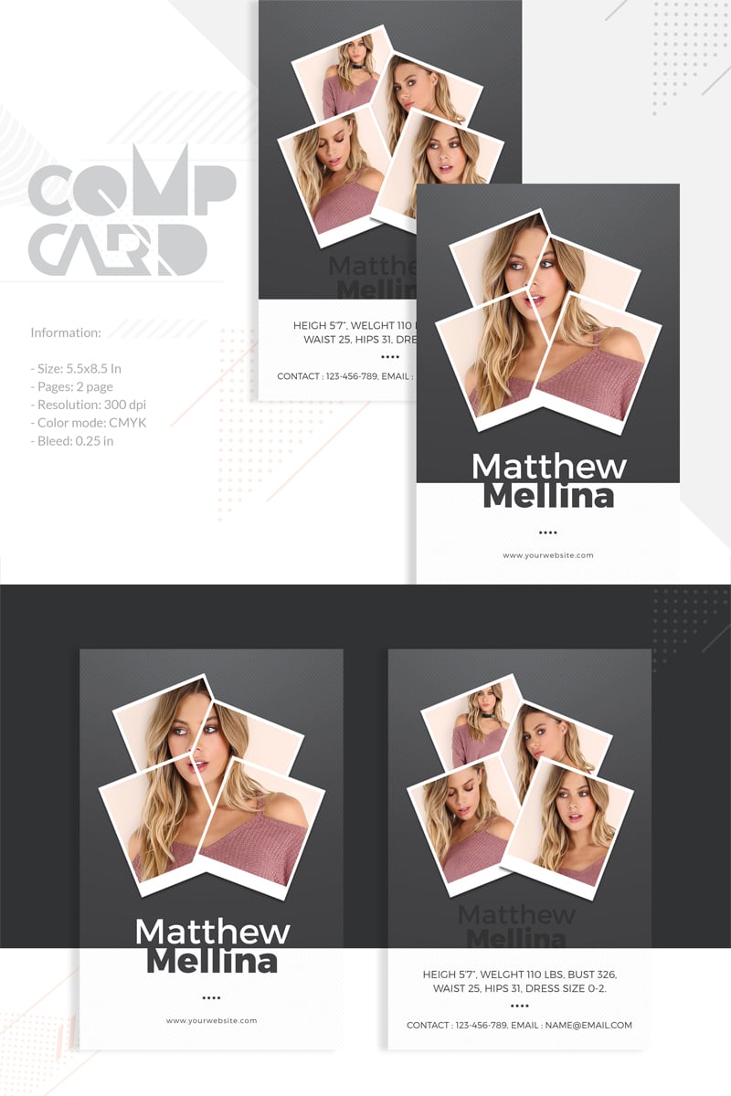 Download Фирменный стиль "Modeling Comp Card - Corporate Identity Template" / Modeling Comp Card - Corporate Identity Template - Фирменный стиль на тему графика modeling comp card fashion models gift special zed template