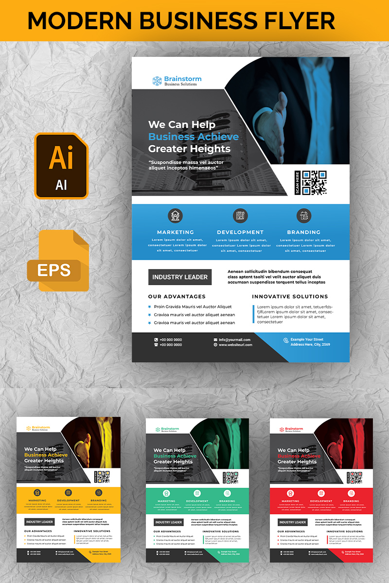 Download Фирменный стиль "Modern Business Flyer - Corporate Identity Template" / Modern Business Flyer - Corporate Identity Template - Фирменный стиль на тему графика flyer modern business computer corporate graphic green red yellow blue professional stationery official