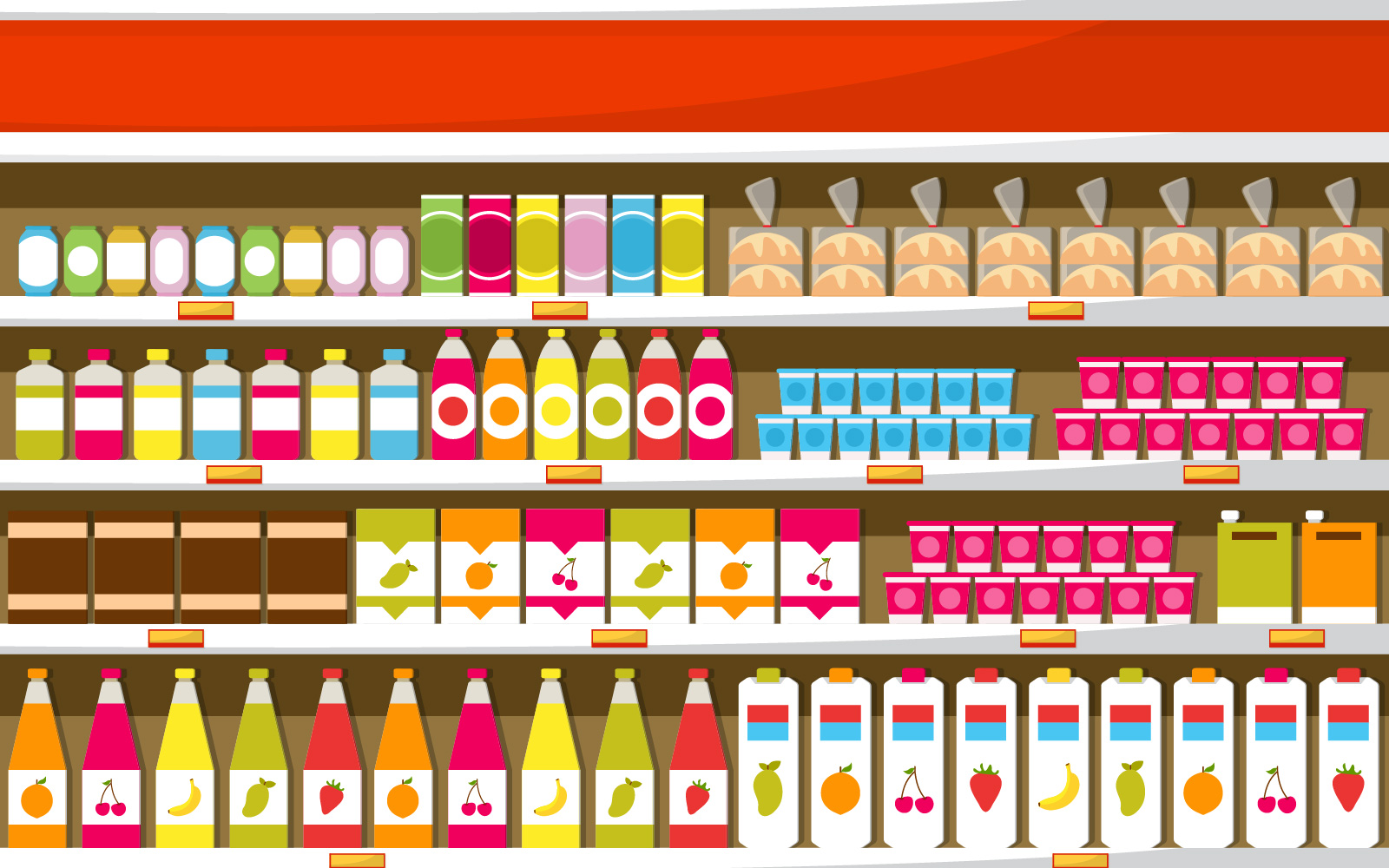 Download Иллюстрация "Modern Department Grocery - Illustration" / Modern Department Grocery - Illustration - Иллюстрация на тему графика supermarket,grocery,shelf,store,retail,shop,mall,interior,flat,illustration,vector,market,sale,fruit,milk,background,big,empty,groceries,showcase