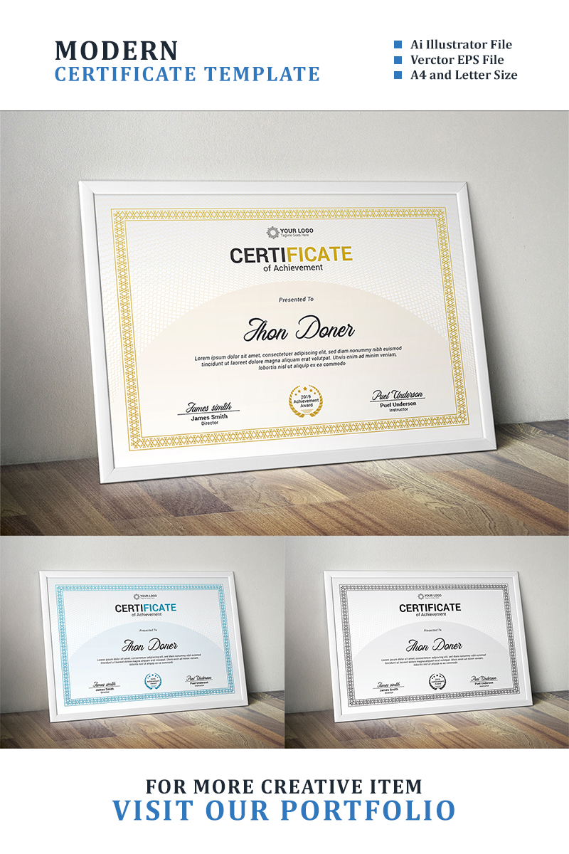 Download Шаблон сертификата "Modern Diploma, Achievement Certificate Template" / Modern Diploma, Achievement Certificate Template - Шаблон сертификата на тему графика achievement appreciation award diploma completion acknowledgement certificates eyelash nail extension modern luxury multipurpose professional training red blue gold green yellow