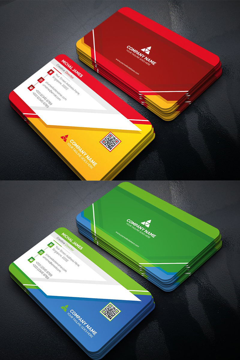 Download Фирменный стиль "Modern Geometric Business Card - Corporate Identity Template" / Modern Geometric Business Card - Corporate Identity Template - Фирменный стиль на тему графика black blue business card design clean corporate creative cyan elegant green line minimalist modern template orange personal print red