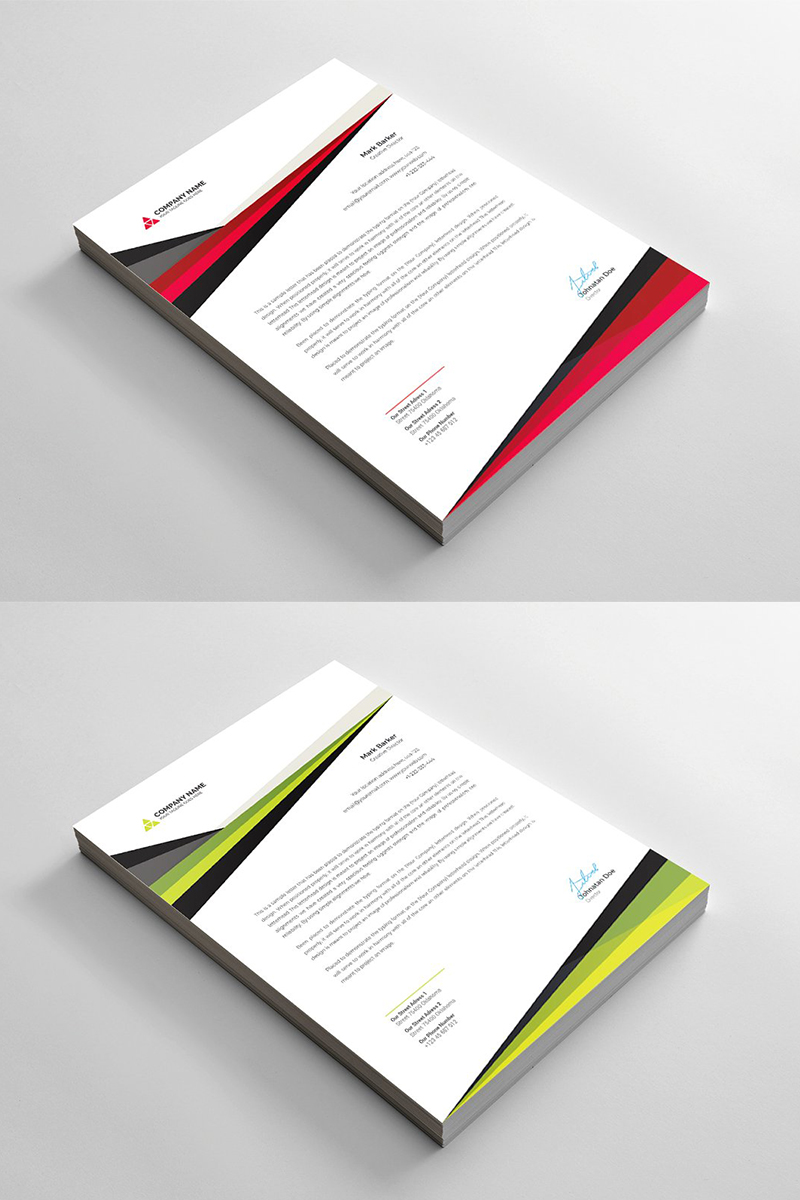 Download Фирменный стиль "Modern Geometric Letterhead - Corporate Identity Template" / Modern Geometric Letterhead - Corporate Identity Template - Фирменный стиль на тему графика brand branding business letterhead clean corporate identity creative dark design pad template line modern presentation professional red stationery us