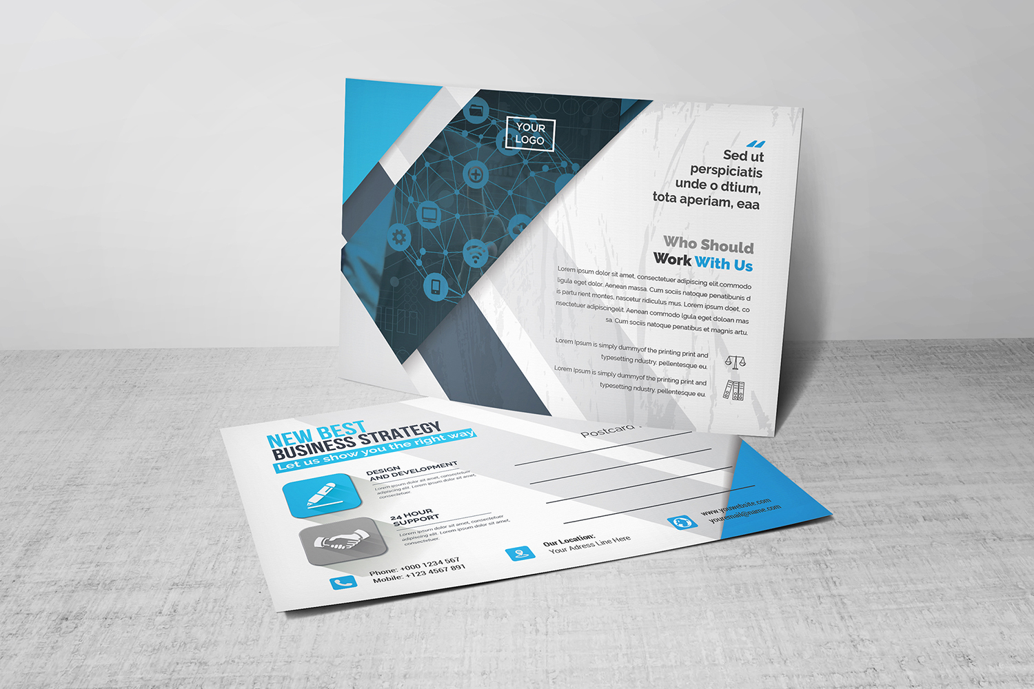 Download Фирменный стиль "Modern Geometric Postcard - Corporate Identity Template" / Modern Geometric Postcard - Corporate Identity Template - Фирменный стиль на тему графика blue,design,flyer,graphic,green,landscape,modern,official,print,ready,professional,simple,standard,web,white