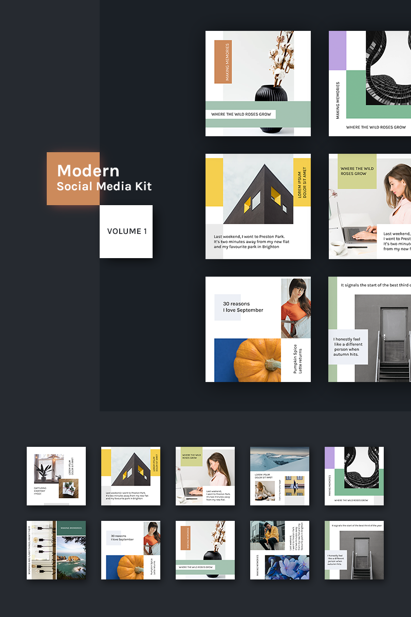 Download Шаблон для соцсетей "Modern Kit (Vol. 1) Social Media Template" / Modern Kit (Vol. 1) Social Media Template - Шаблон для соцсетей на тему графика social blog post hygge scandinavian trendy modern facebook instagram lifestyle visual quote media promotion stylish presentation minimal photography magazine template