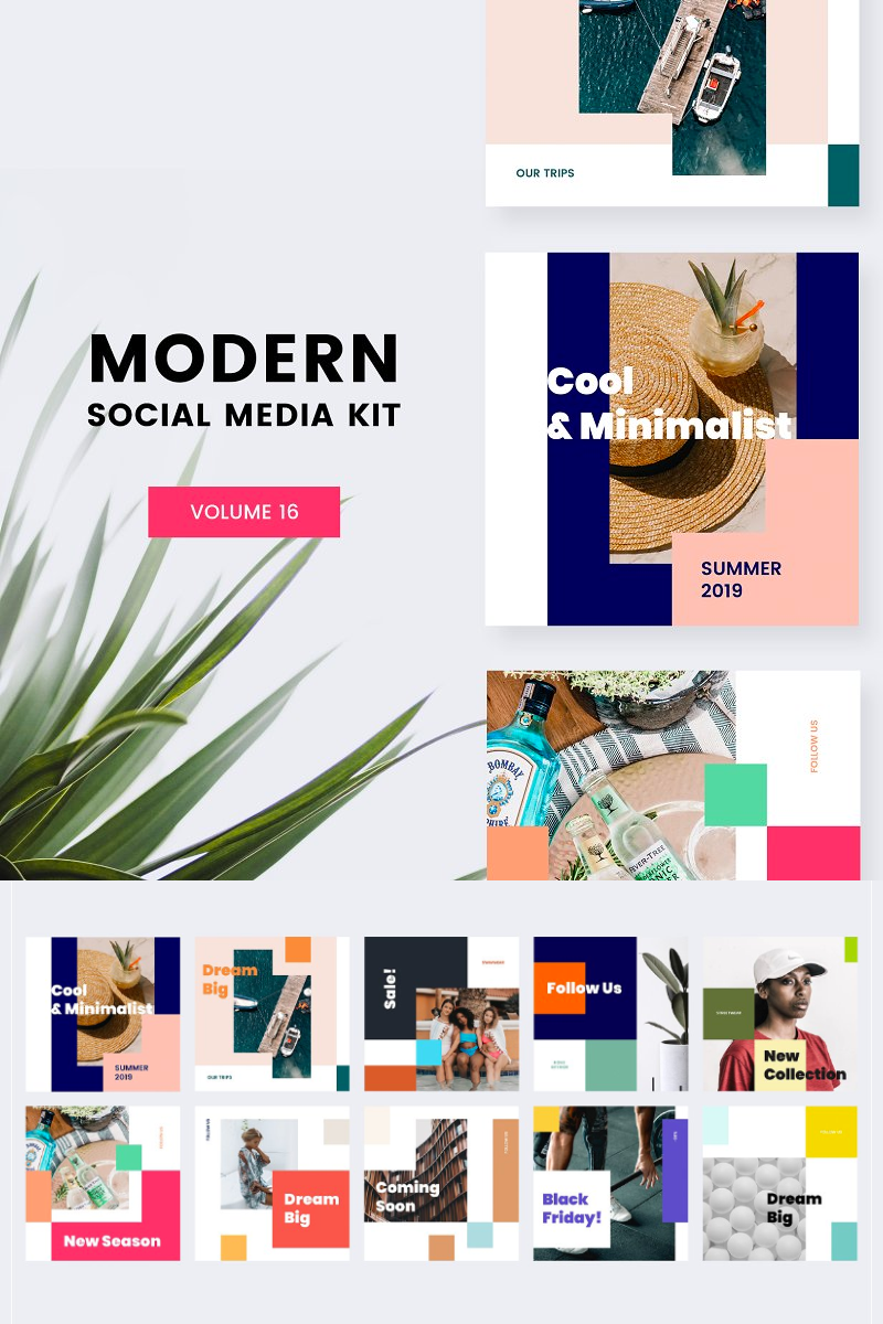 Download Шаблон для соцсетей "Modern Kit (Vol. 16) Social Media Template" / Modern Kit (Vol. 16) Social Media Template - Шаблон для соцсетей на тему графика social blog post instagram facebook modern simple minimal promo trendy fashion store shop magazine color banner media kit advertising square