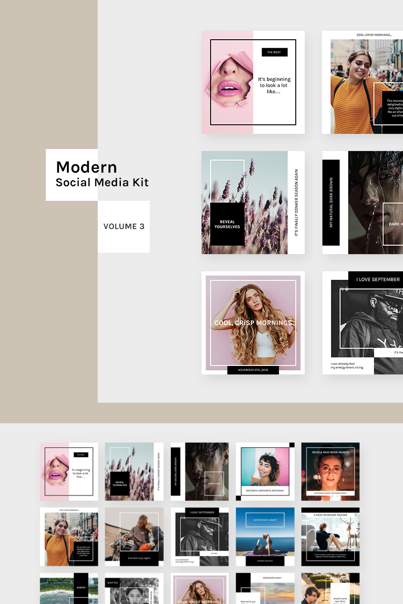 Download Шаблон для соцсетей "Modern Kit (Vol. 3) Social Media Template" / Modern Kit (Vol. 3) Social Media Template - Шаблон для соцсетей на тему графика social blog post hygge scandinavian trendy modern facebook instagram lifestyle visual quote media promotion stylish presentation minimal photography magazine template