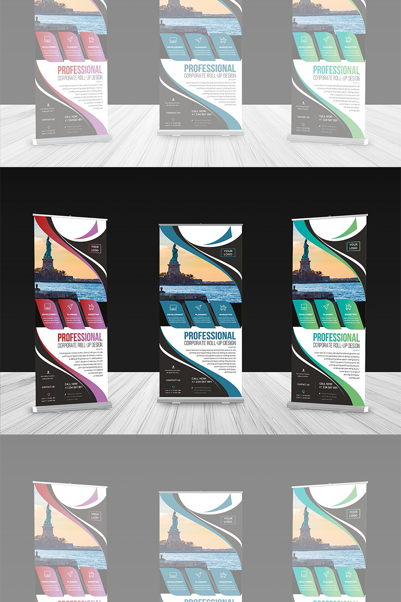 Download Фирменный стиль "Modern Roll-up Banner - Corporate Identity Template" / Modern Roll-up Banner - Corporate Identity Template - Фирменный стиль на тему графика advert advertise ai banner signage template banners billboard blue business roll up clean corporate display eps file global graphic illustrator