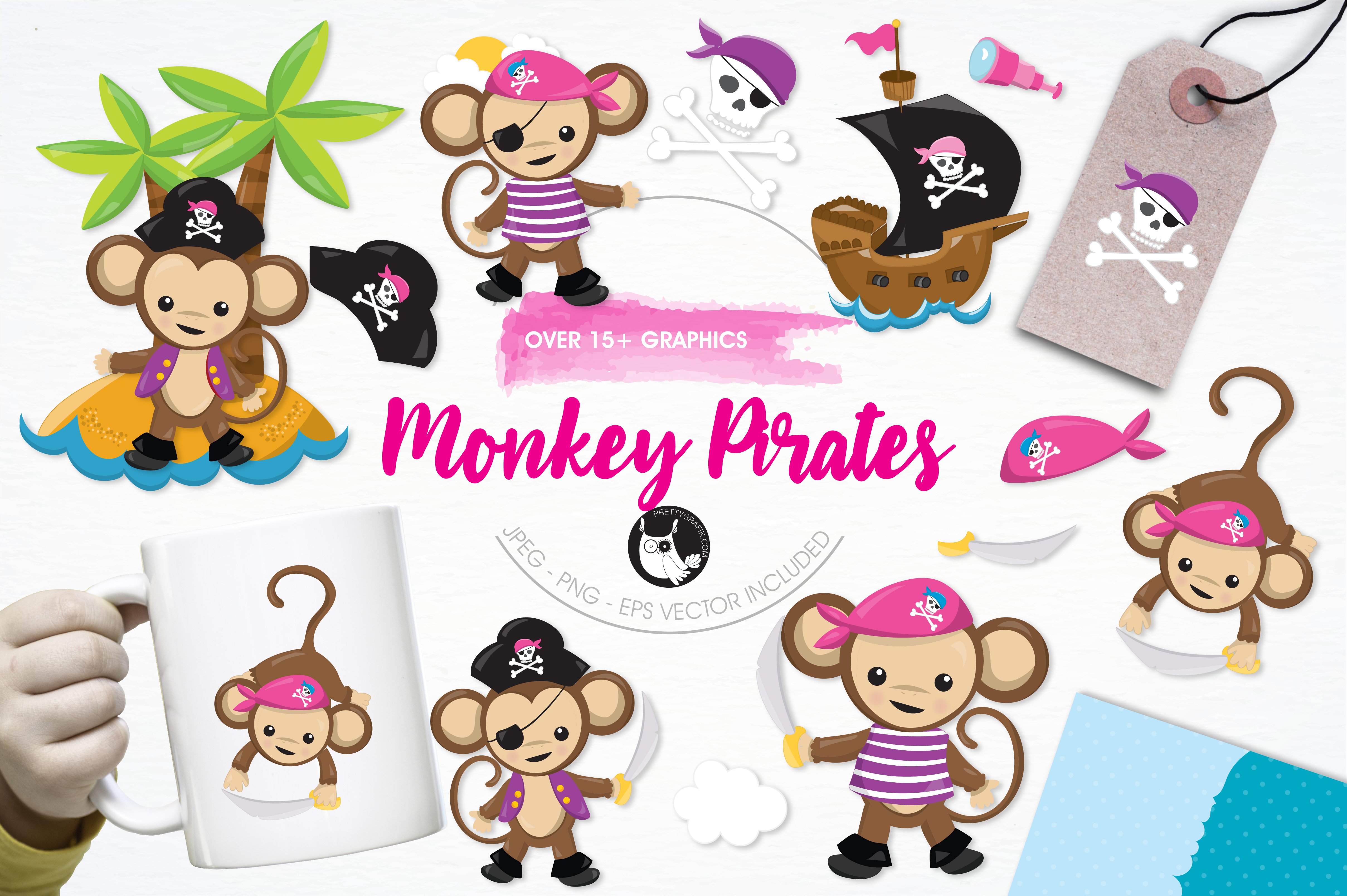 Download Vector "Monkey pirate illustration pack - Vector Image" / Monkey pirate illustration pack - Vector Image - Vector на тему графика illustration,vector,graphics,clipart,island,palm tree,clip art,icons,skull,ship,eps,telescope,pirate,monkey,prettygrafik,sword