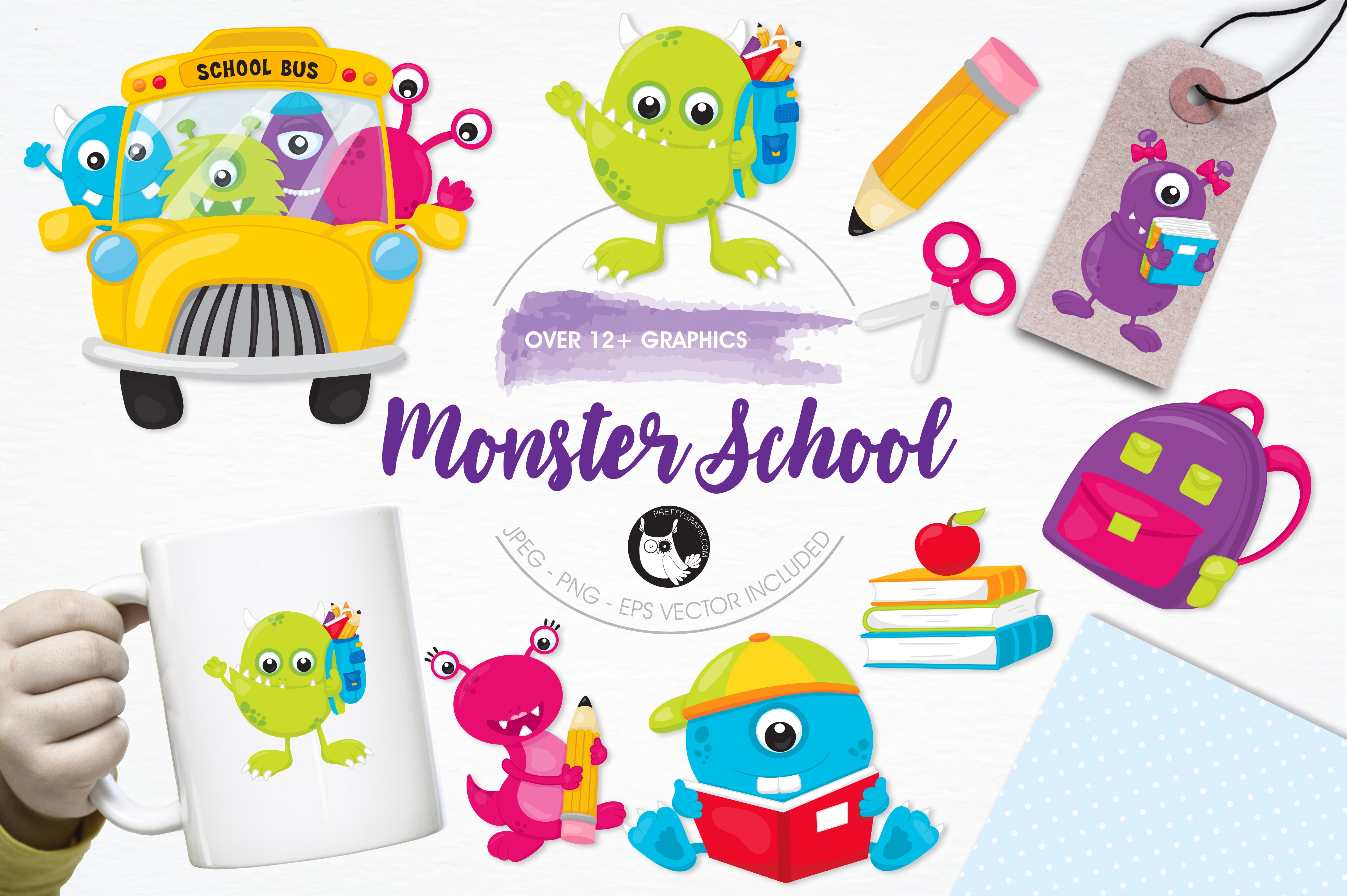 Download Vector "Monster school illustration pack - Vector Image" / Monster school illustration pack - Vector Image - Vector на тему графика illustration,book,vector,pencil,graphics,clipart,clip art,school,icons,monster,eps,school bus,reading,prettygrafik,schoolbag