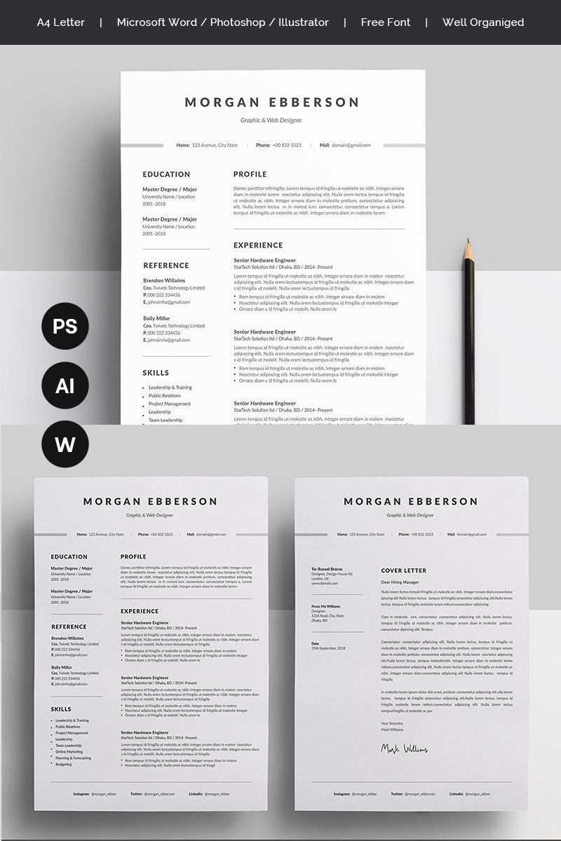 Download Резюме "Morgan Ebberson Resume Template" / Morgan Ebberson Resume Template - Резюме на тему графика a4 black bright career clean cv resume cover letter creative curriculum vitae design docx editable elegant job light minimalist professional