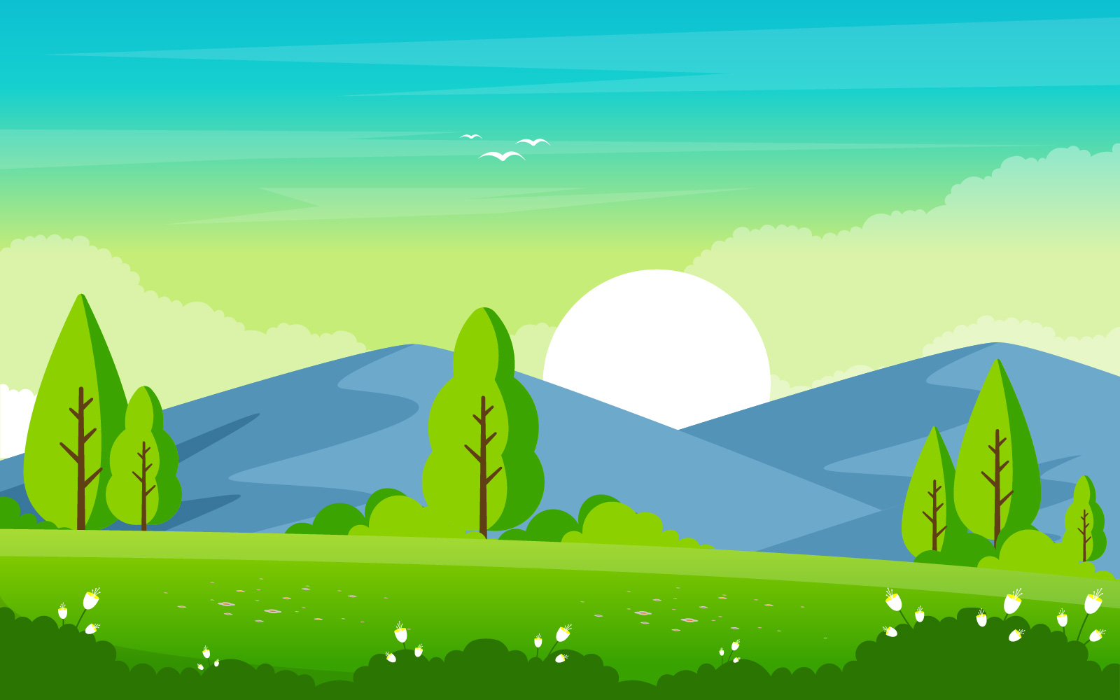 Download Иллюстрация "Mountain Green Nature - Illustration" / Mountain Green Nature - Illustration - Иллюстрация на тему графика summer,mountain,green,nature,field,land,sky,landscape,illustration,vector,lake,snow,background,switzerland,forest,river,bliss,cloud,grass,beautiful