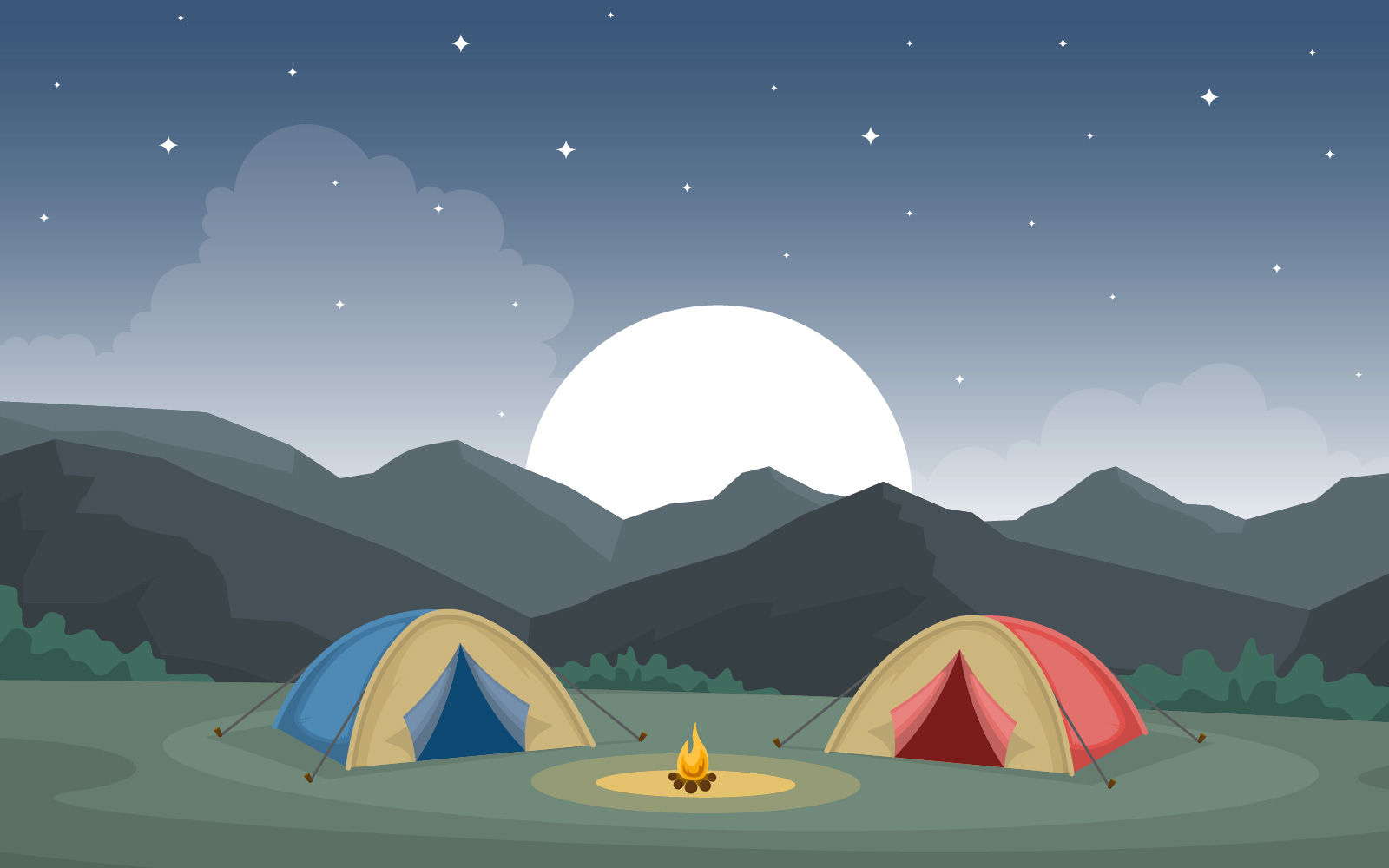 Download Иллюстрация "Mountain Park Landscape - Illustration" / Mountain Park Landscape - Illustration - Иллюстрация на тему графика camping,adventure,outdoor,park,mountain,nature,landscape,cartoon,illustration,night,lake,vector,poster,trail,view,art,forest,moon,river,wonderland