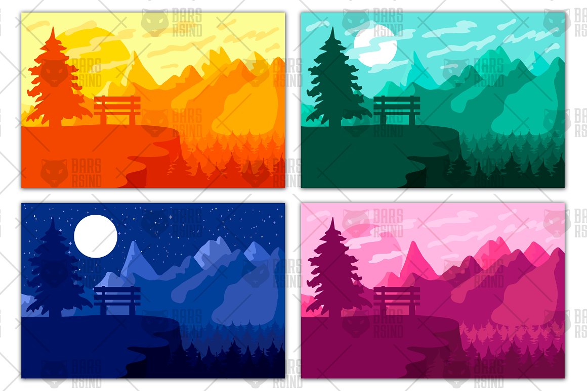 Download Vector "Mountain's Forest Reserve And Park - Vector Image" / Mountain's Forest Reserve And Park - Vector Image - Vector на тему графика forest,bench,illustration,park,tree,landscape,wood,nature,background,plant,travel,vector,environment,summer,meditation,mountain,night,day,evening,scene