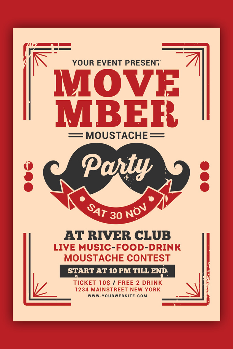 Download Фирменный стиль "Movember Moustache Party - Corporate Identity Template" / Movember Moustache Party - Corporate Identity Template - Фирменный стиль на тему графика black hat challange charity competition contest event father fest festival flyer fundraiser hats illustration moustache movember mustache november party post