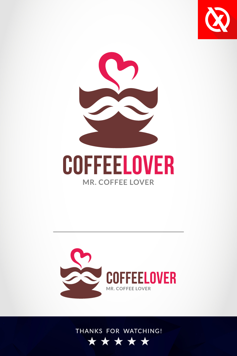 Download Шаблон логотипа "Mr. Coffee Lover Logo Template" / Mr. Coffee Lover Logo Template - Шаблон логотипа на тему графика mr,beans,beverage,brew,brown,cafe,cafeteria,heart,lover,gentle,man,love,coffee,modern,shop,unique,logo,restaurant,food,drink