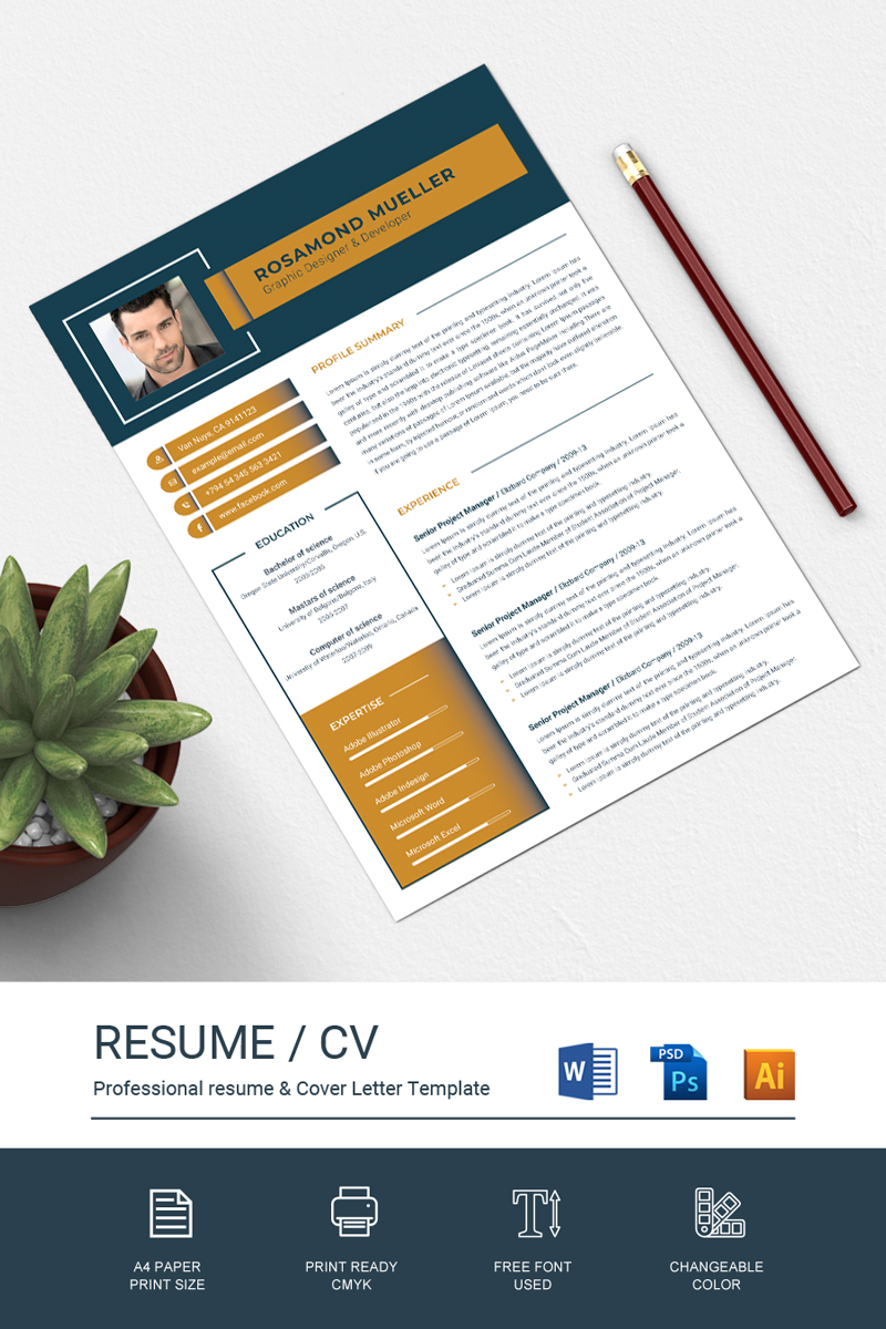 Download Резюме "Mueller Resume Template" / Mueller Resume Template - Резюме на тему графика a4 clean resume cv doc elegant template indesign infographic modern professional creative design minimal pages portfolio word us letter