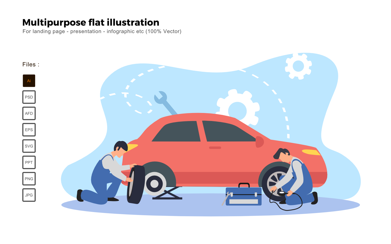 Download Vector "Multipurpose Flat Illustration Tire Car Service - Vector Image" / Multipurpose Flat Illustration Tire Car Service - Vector Image - Vector на тему графика flat illustration,vector illustration,flat design,flat icon pack,presentation,powerpoint,keynote,business flat design,people illustration,characters illustration,business concept,seo,analysis