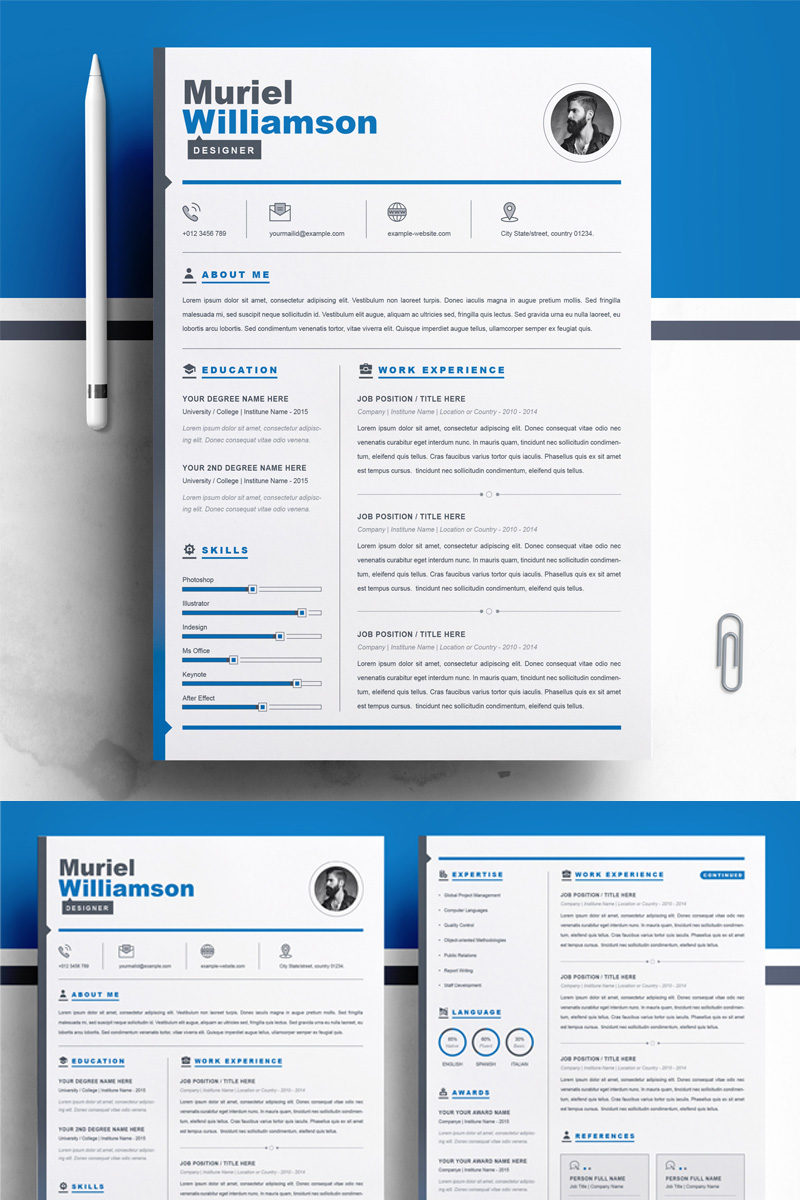 Download Резюме "Muriel Resume Template" / Muriel Resume Template - Резюме на тему графика 1 page cv resume 2 3 apple clean cover letter curriculum vitae template illustrator eps mac pages microsoft word minimal
