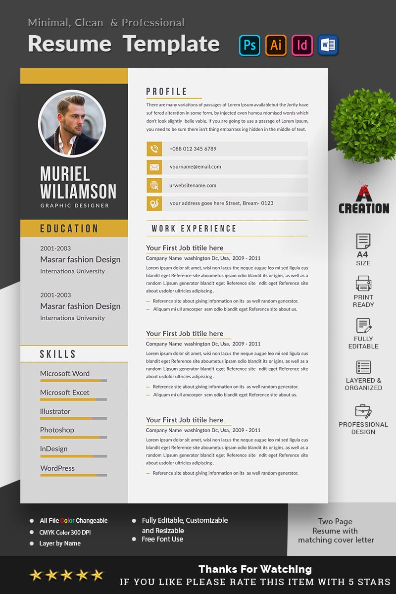 Download Резюме "Muriel Williamson Resume Template" / Muriel Williamson Resume Template - Резюме на тему графика a4 bundle classic clean cv job minimalist download layout template word simple application student objective modern 2pageresume coverletter