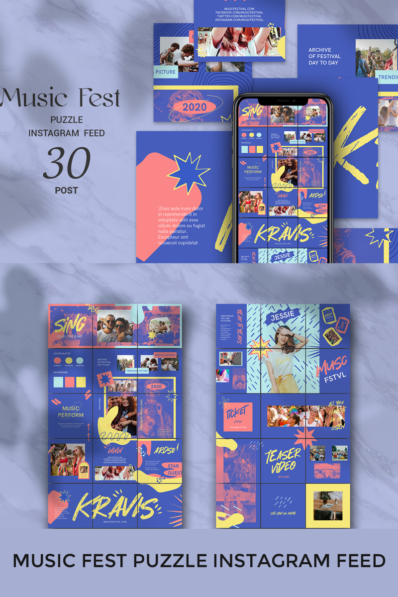 Download Шаблон для соцсетей "Music Fest Puzzle Instagram Feed Social Media Template" / Music Fest Puzzle Instagram Feed Social Media Template - Шаблон для соцсетей на тему графика alternative artistic azruca club concert dance disco dj dubstep electro electronic event festival futuristic grunge hipster instagram music night nightclub
