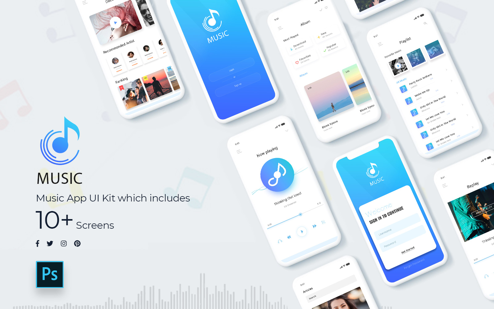 Download UI элементы "Music Mobile App UI Kit " / Music Mobile App UI Kit - UI элементы на тему графика music,mobile,app,ui,kit,ux,graphic,design,template,templates,application,audio,player,modern,creative