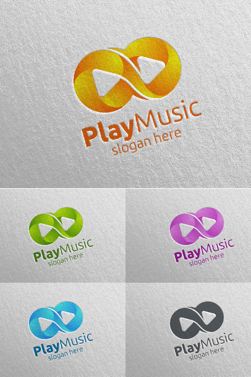 Download Шаблон логотипа "Music with Infinity and Play Concept 68 Logo Template" / Music with Infinity and Play Concept 68 Logo Template - Шаблон логотипа на тему графика music logo karaoke melody movie multimedia record voice singer note sound song play video volume audio vector compose disco infinity