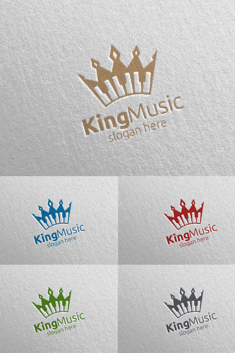 Download Шаблон логотипа "Music with King and Piano Concept 27 Logo Template" / Music with King and Piano Concept 27 Logo Template - Шаблон логотипа на тему графика music logo karaoke melody movie multimedia record voice singer note sound song play video volume audio vector compose king