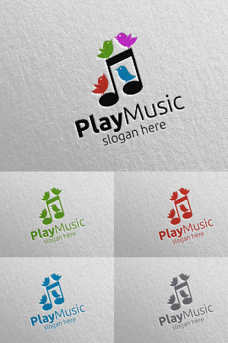 Download Шаблон логотипа "Music with Note and Bird Concept 53 Logo Template" / Music with Note and Bird Concept 53 Logo Template - Шаблон логотипа на тему графика music logo karaoke melody movie multimedia record voice singer note sound song play video volume audio vector compose disco bird