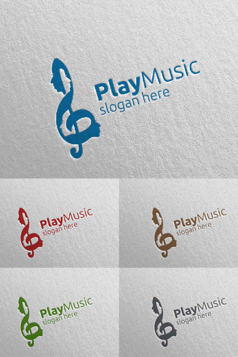 Download Шаблон логотипа "Music with Note and Face Concept 52 Logo Template" / Music with Note and Face Concept 52 Logo Template - Шаблон логотипа на тему графика music logo karaoke melody movie multimedia record voice singer note sound song play video volume audio vector compose disco face